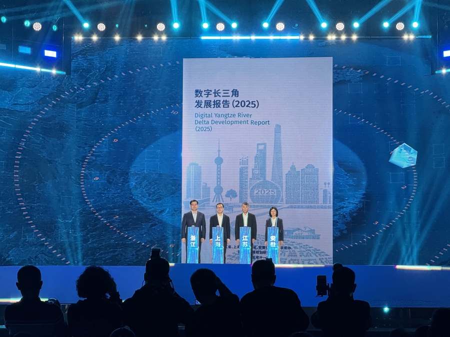 沪、苏、浙、皖长三角联席办负责人联合发布《数字长三角发展报告(2025)》 黄佳琪 摄