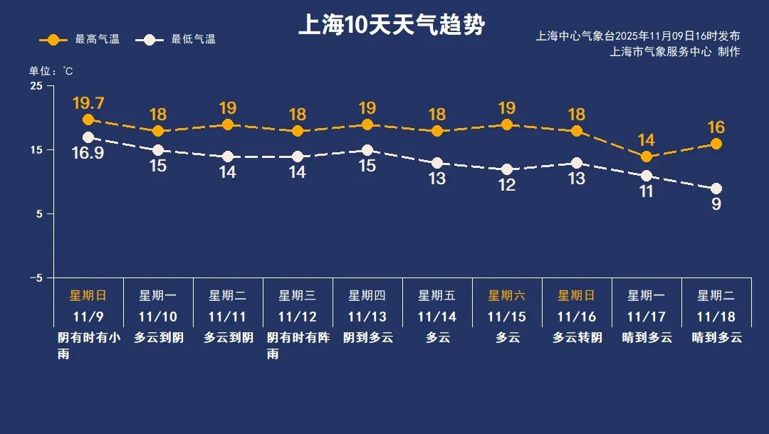 本周上海气温整体下降,最高气温18℃至19℃,最低气温12℃至15℃。今天,上海最低气温15℃,最高18℃,早晚较凉,注意保暖。周三前后,受冷空气和“凤凰”外围环流共同影响,有一次降雨过程。周四雨止,周五起迎来多云天气,但周后期,郊区气温或将跌至个位数。