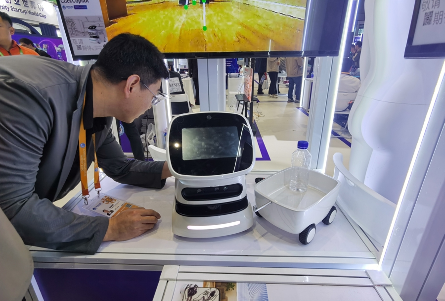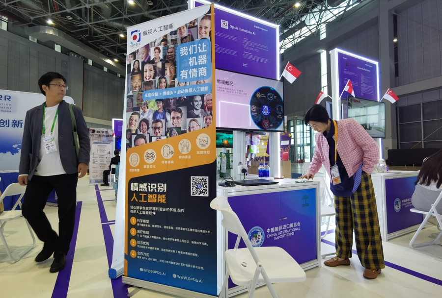 创新孵化专区内,来自加拿大的可立点第三次参加进博会,和前两次不同,首席运营官何来晨身边多了一条“机器狗”。它能够陪老人聊天,还能协同室内的摄像头、家电,提醒老人注意相关行为存在的风险,并对摔倒、进入卫生间长时间没出来等情况发出关心,得不到回应就向家人发送警报。